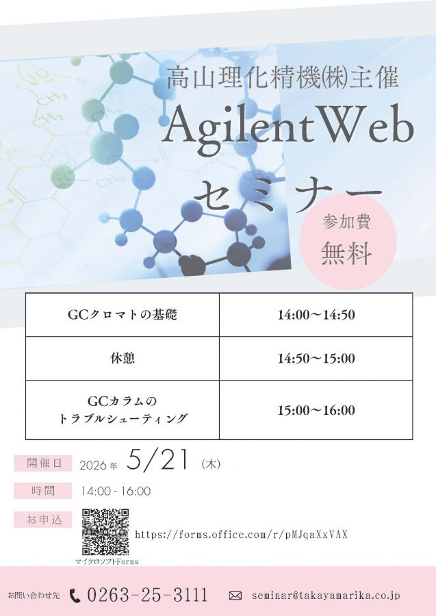高山理化精機㈱主催 Agilent Webセミナー 開催のお知らせ 日時:2026年5月21日(木) 14:00 ~ 16:00